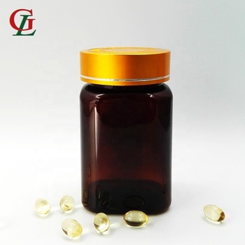 ขวดยาพลาสติก PET สำหรับ300CC ขวดแคปซูลสีเหลืองอำพันพร้อมฝาเกลียวและที่บุรอง